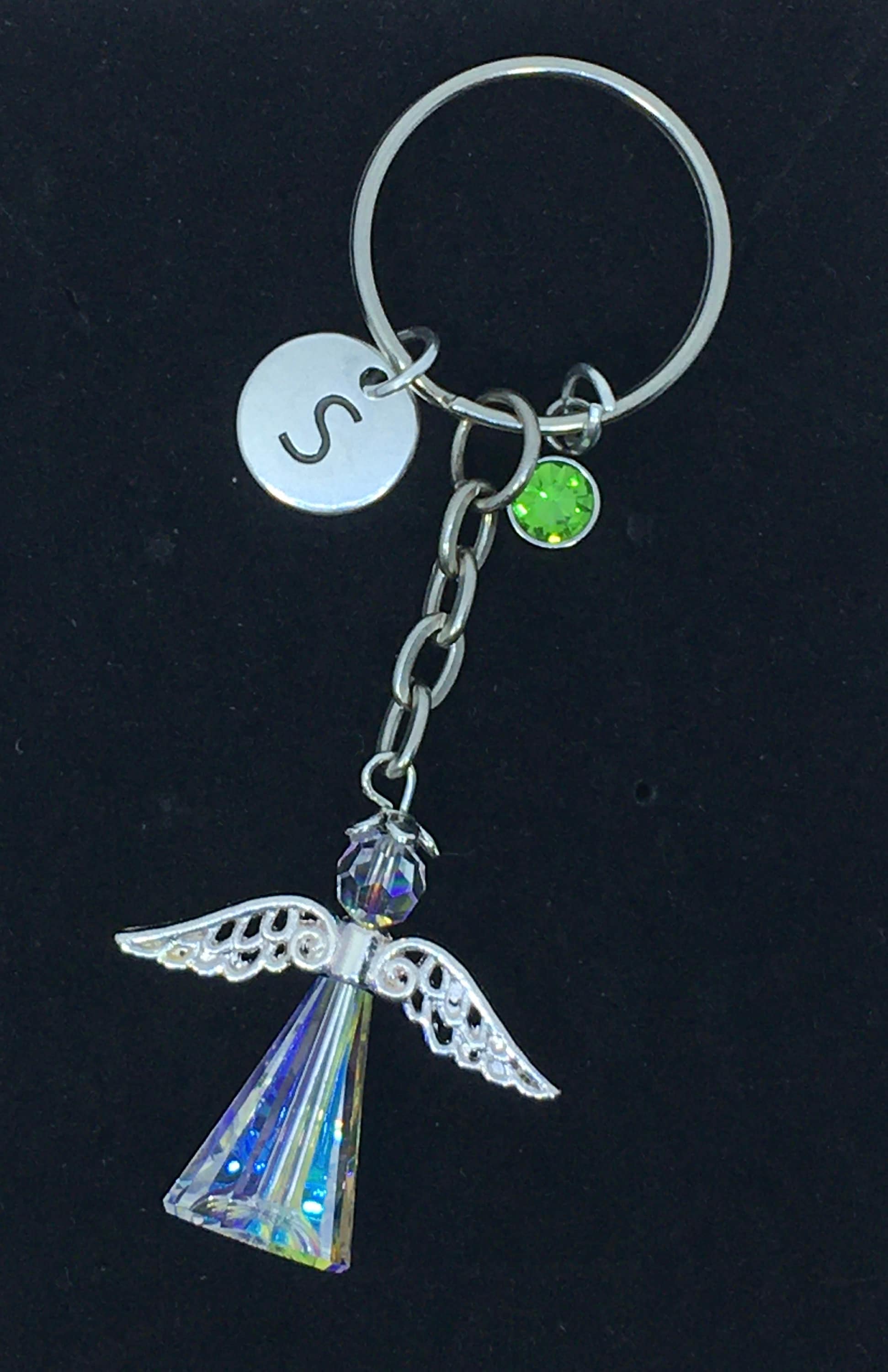Each keychain is handmade and can be personalised with either a birthstone charm or initial or both.